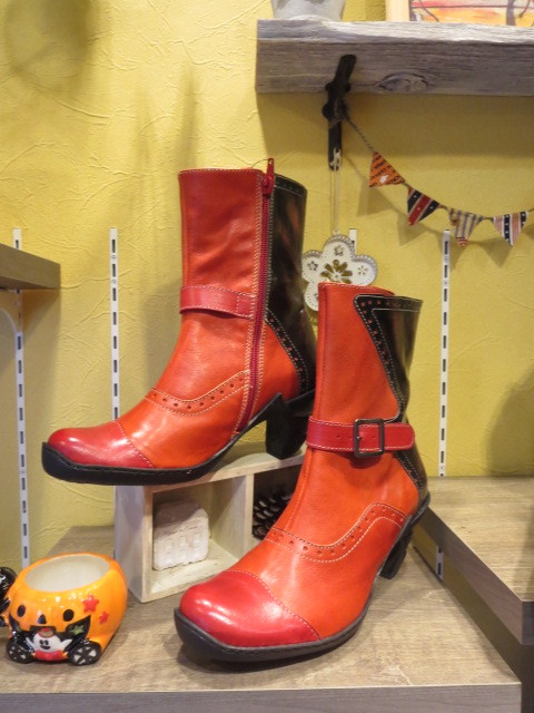 赤いブーツ! 色がなんともいえない、いい雰囲気出してます。 茶とコンビなので派手過ぎず。