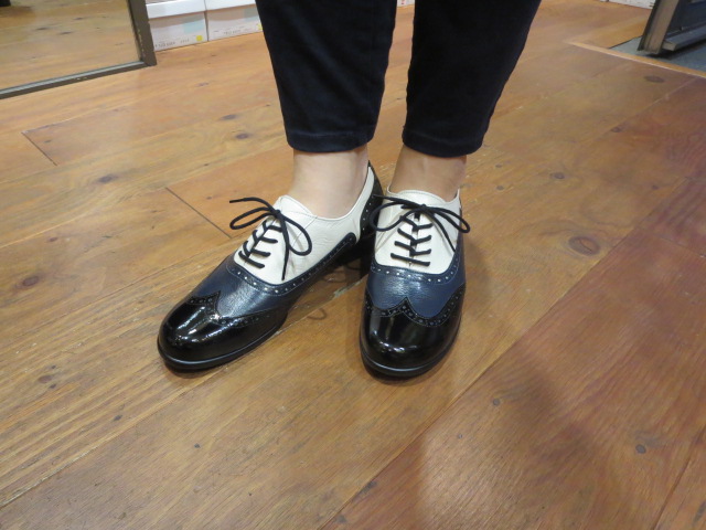 ウィングチップタイプ。ブラックのパテントとネイビーとホワイトのコンビネーション