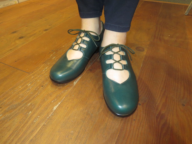 ダークグリーンのギリーシューズ。両方とも素敵ですね。