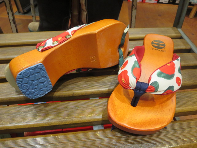 椿柄の花緒とブルーのソールが素敵です。