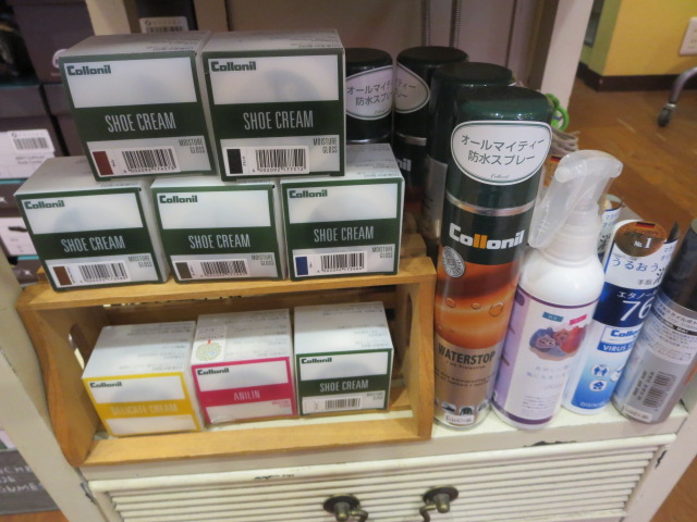 当店は靴クリームや防水スプレーなど